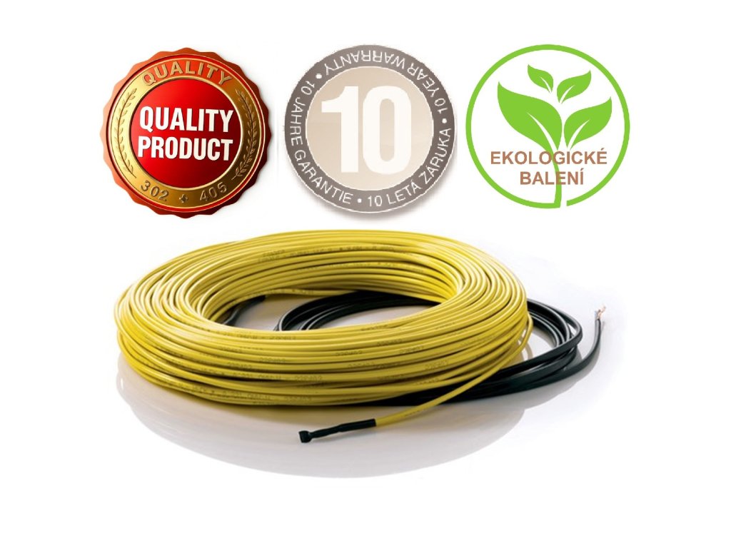 Dvoužilový topný kabel s výkonem 10W/m a plným ochranným opletením je určen pro vytápění a temperaci budov, a ochranu potrubí proti zamrzání.