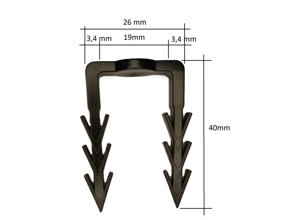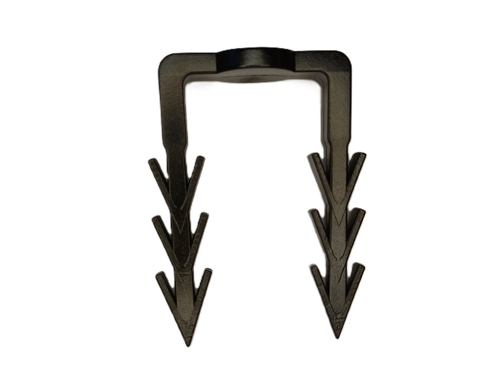 Plastová příchytka k fixaci topných kabelů nebo rohoží na tepelnou izolaci při pokládce podlahového vytápění. Orientační spotřeba 5 ks/m topného kabelu (pro topné okruhy), nebo 20 ks/m² (pro topné rohože). Příchytka je určena k ruční fixaci (má zvětšenou plošku pro zatlačení palcem), nelze ji použít do montážní hole. Protože je příchytka větší, je vhodná i k fixaci topných kabelů nebo například instalační trubice (husího krku) s podlahovou sondou.