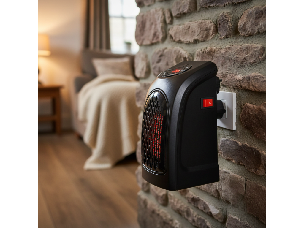 Kompaktní keramický ohřívač 350W s PTC topným tělesem pro efektivní a bezpečné vytápění. Zapojení přímo do zásuvky 230V, nastavitelný termostat a až 12h časovač umožňují pohodlné ovládání. Digitální LED displej s ukazatelem teploty. Lehký a snadno přenosný (0,4 kg). Ochrana proti přehřátí a IP20 krytí pro bezpečné použití. Rozměry: 12,5 × 8,5 × 16 cm. Napájení 230V/50Hz.