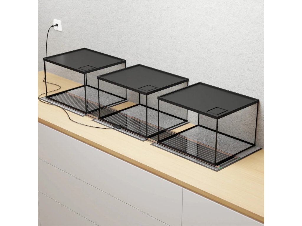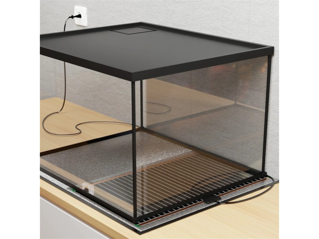 POZOR: Pokud je vytápění provozováno bez dozoru, musí být teplota omezena vhodným termostatem se sondou umístěnou ve středu vytápěné plochy! Teplota nesmí přesáhnout hodnotu požadovanou jednotlivými druhy chovaných zvířat, maximálně však 60°C. U folií umístěných pod nádrží je důležité zajistit dostatečný odvod tepla - pozor např. na výšku a složení substrátu na dně.